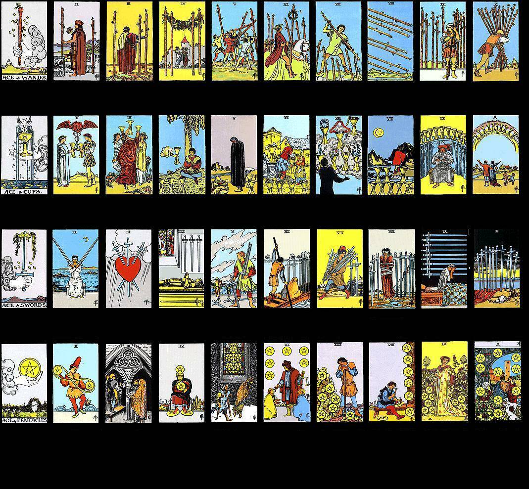 Díl čtvrtý, Meče (Swords)Meče jsou naše myšlení, naše ego. Karty mečů ukazují milníky k překonání, varování, jsou negativní. Nejsou to lákavé stavy vzniklé po překonání milníků jako u jiných karet. Zatímco 10 pohárů nás láká, tak 10 mečů děsí. Ale přitom je oboje stejně atraktivní. Nejspíš to je jen tím, že autor karet v době vydání do 10 mečů nedošel.